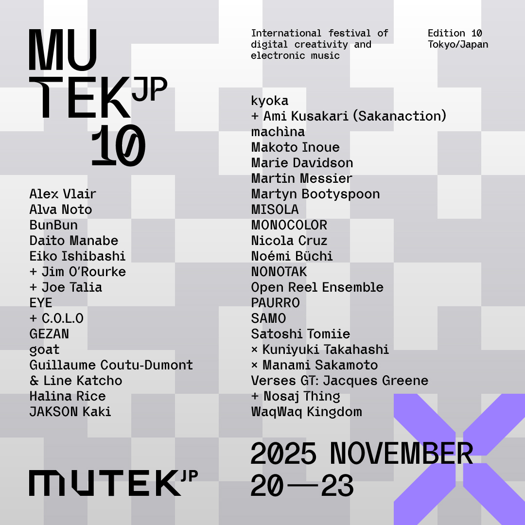 The 10th edition of MUTEK.JP brings together 30+ artists from around the world in Shibuya, Tokyo’s vibrant hub of creativity, nightlife, and innovation.