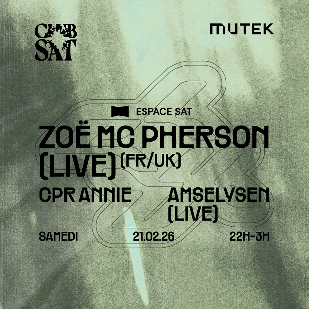 Un Club SAT, qui présente un·e artiste franco-irlandais·e, performeur·euse incarnant l’inattendu, designer sonore explorant les extrêmes, et fondateur·rice du label et collectif interdisciplinaire SFX : Zoë Mc Pherson. En ouverture, deux artistes de la scène underground montréalaise : CPR Annie et Amselysen.